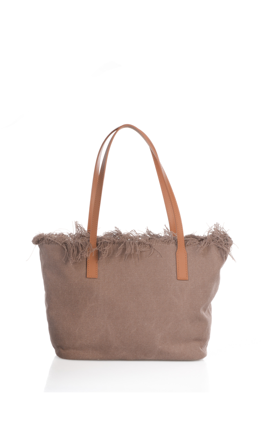 Borsa a mano modello city bag medium con motivo di frange applicate, chiusura con zip, due manici fissi in vera pelle a contrasto colore, logo ricamato frontale a contrasto colore, uno scomparto, una tasca interna di servizio chiusa con zip, fodera interna in tessuto a righe a contrasto colore.