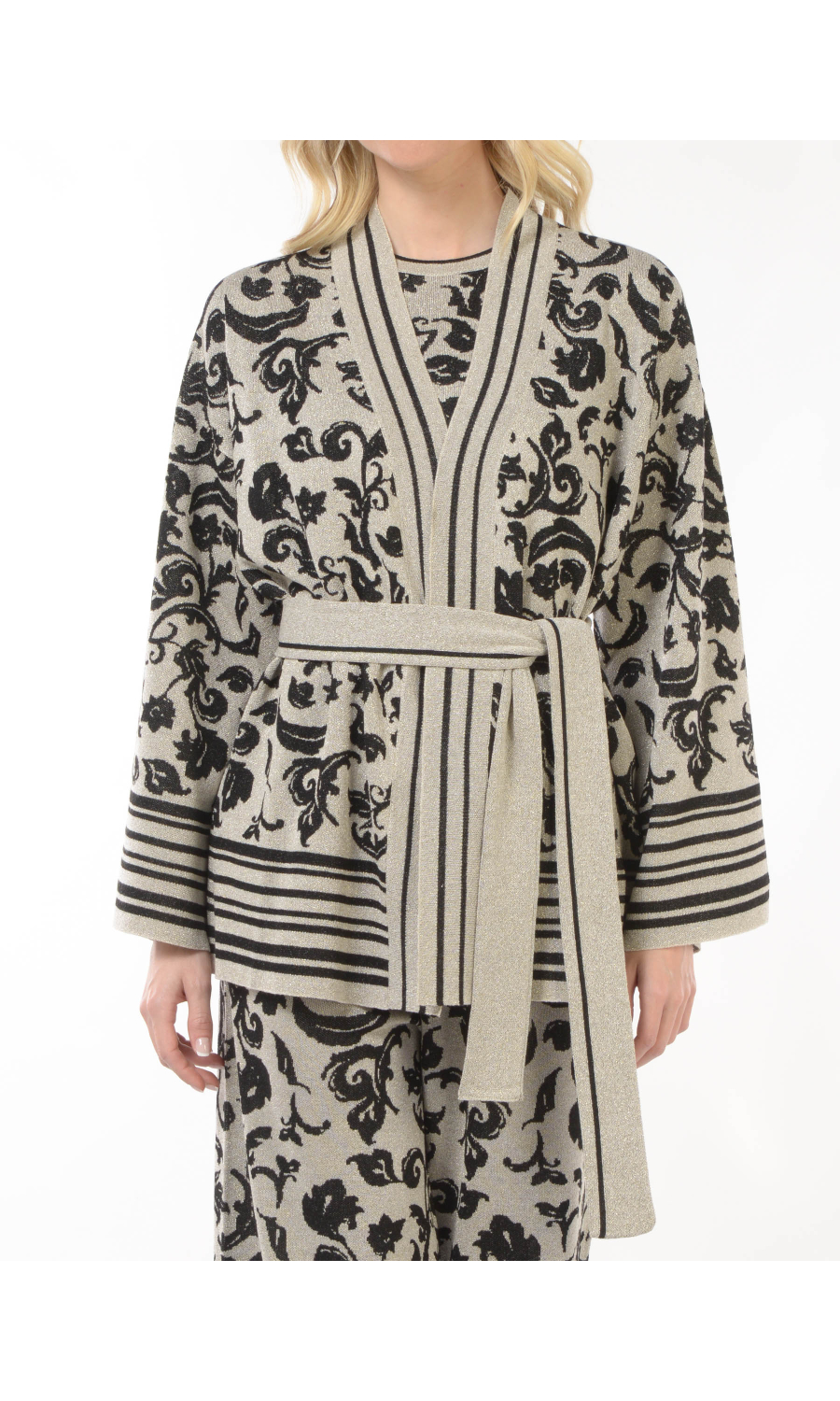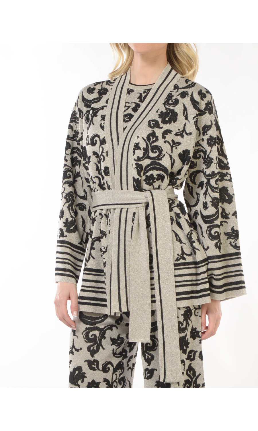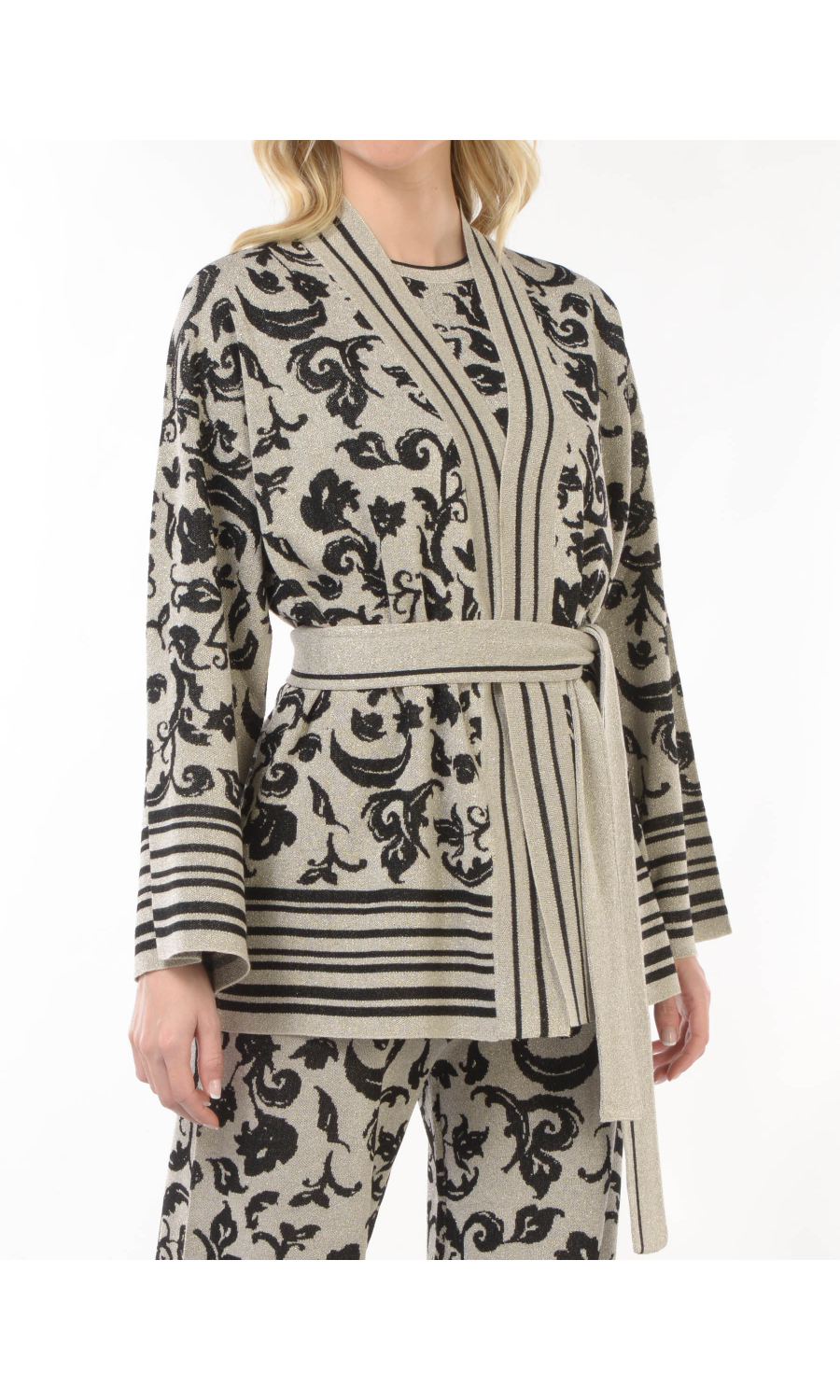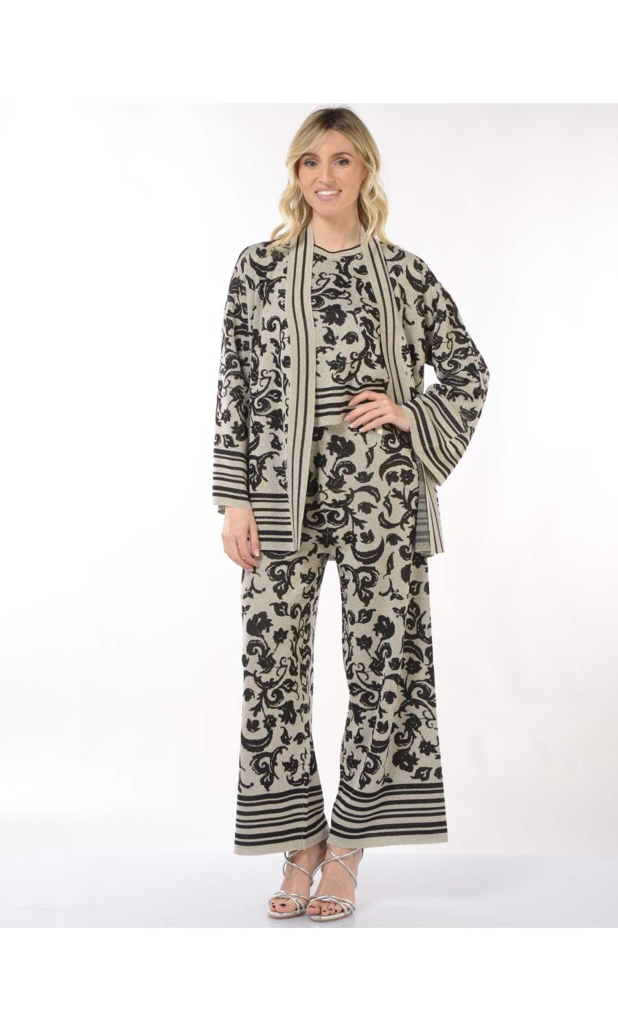 Composizione: 71% VISCOSA 17% POLIAMMIDICA 12% FIBRA METALIZZATA