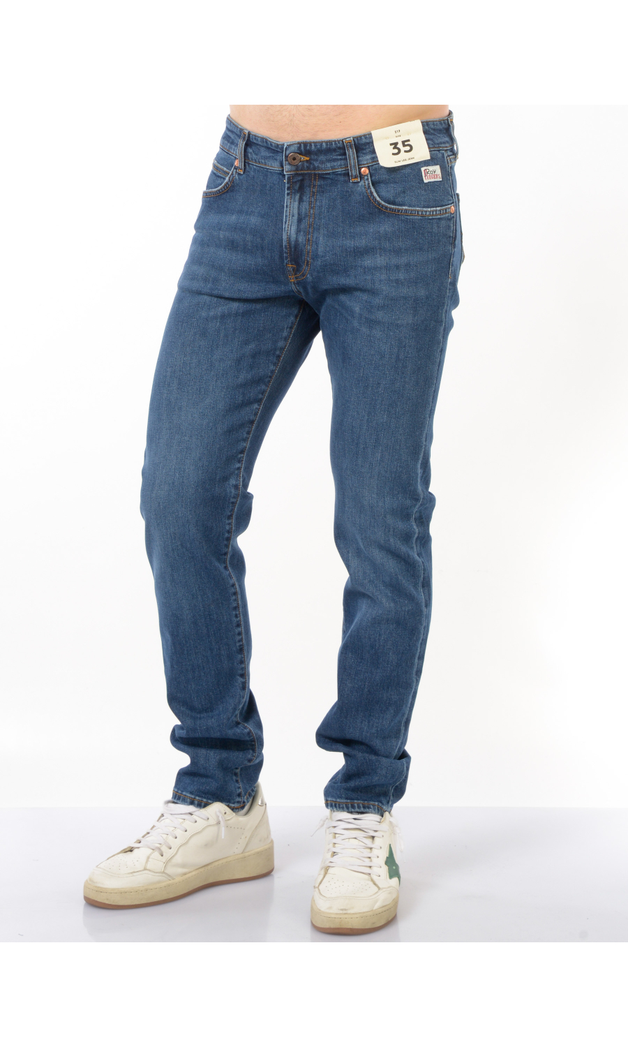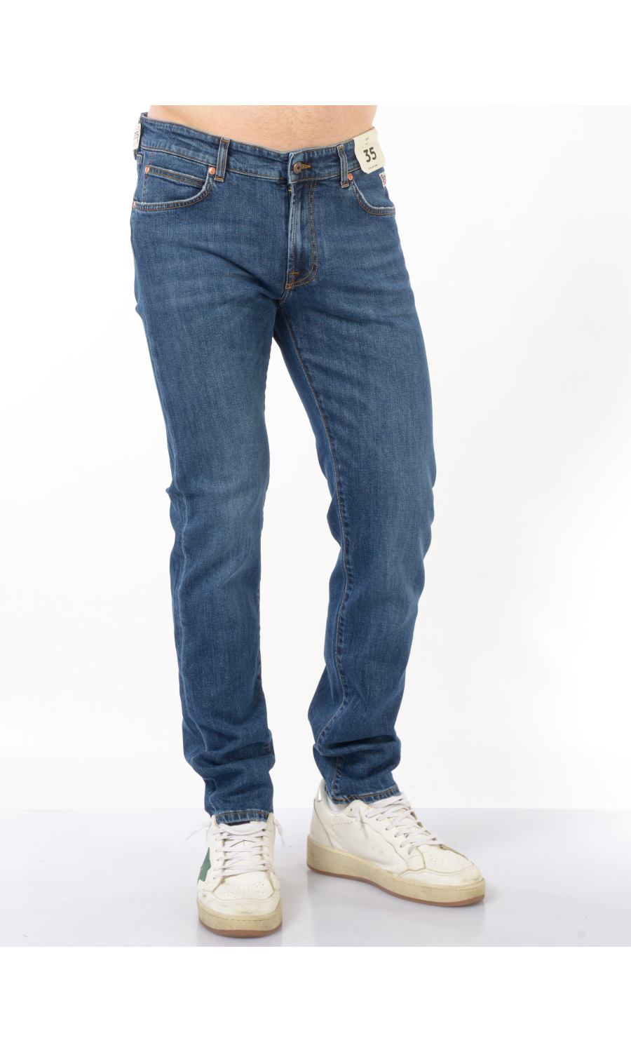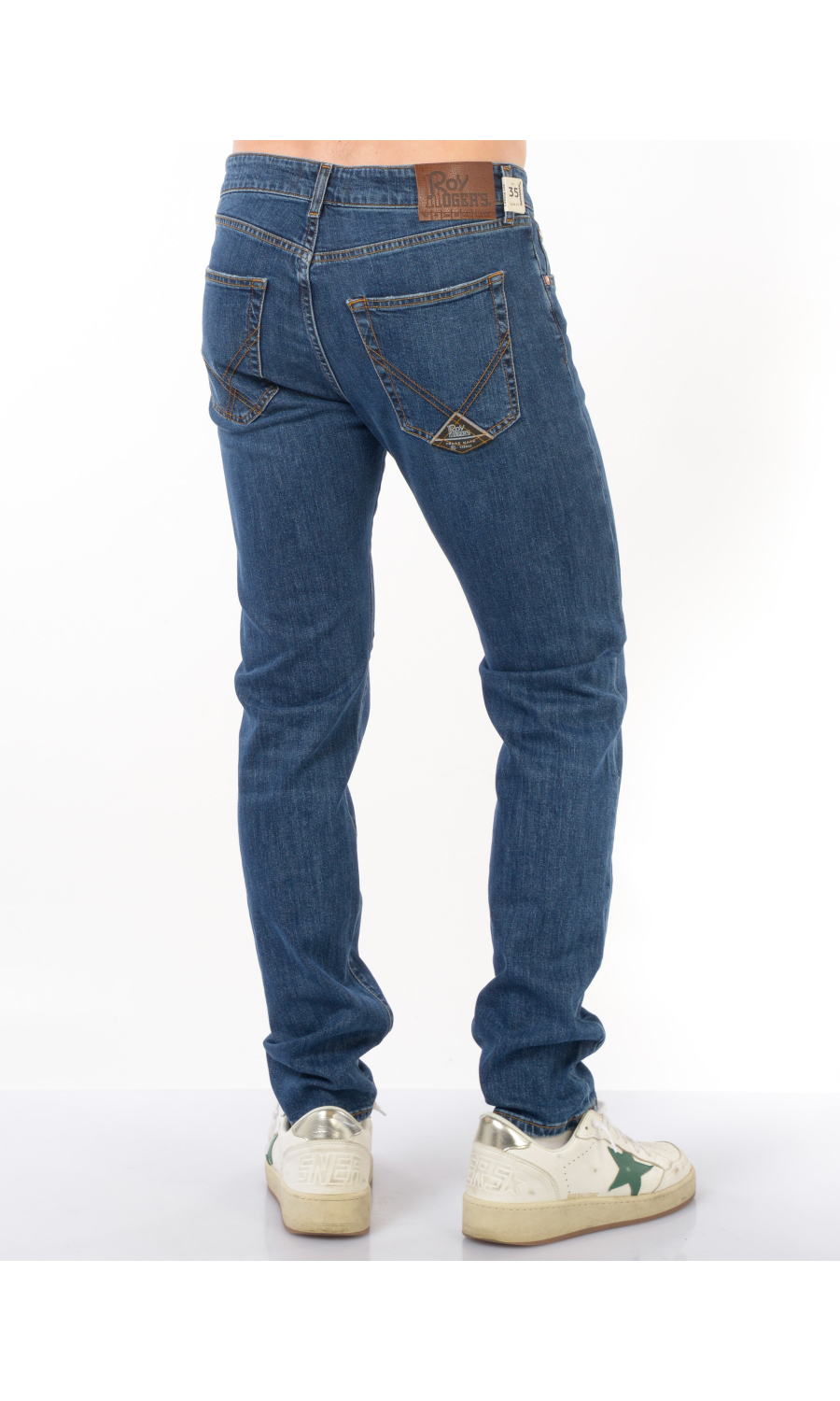 Jeans modello 517 Slim Leg Jean cinque tasche, chiusura frontale con bottone logato a vista e zip nascosta, fascetta in vita con passanti e salpa posteriore logata effetto pelle martellata a contrasto colore, rivetti logati applicati, motivo di impunture a contrasto colore, logo applicato frontale e posteriore, effetto stone washed e used.