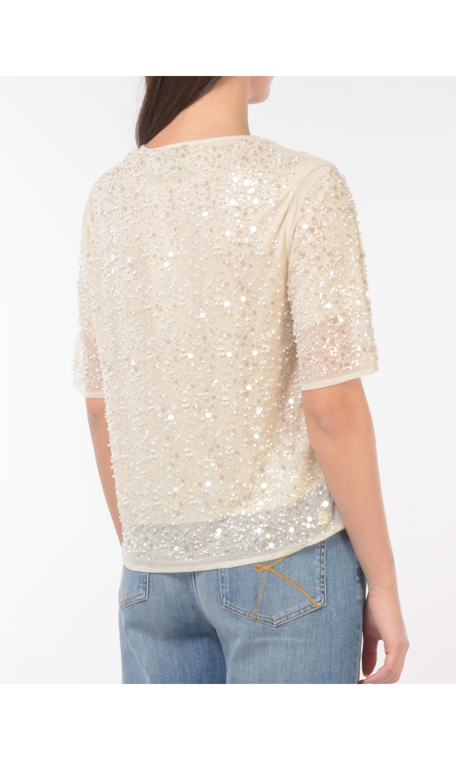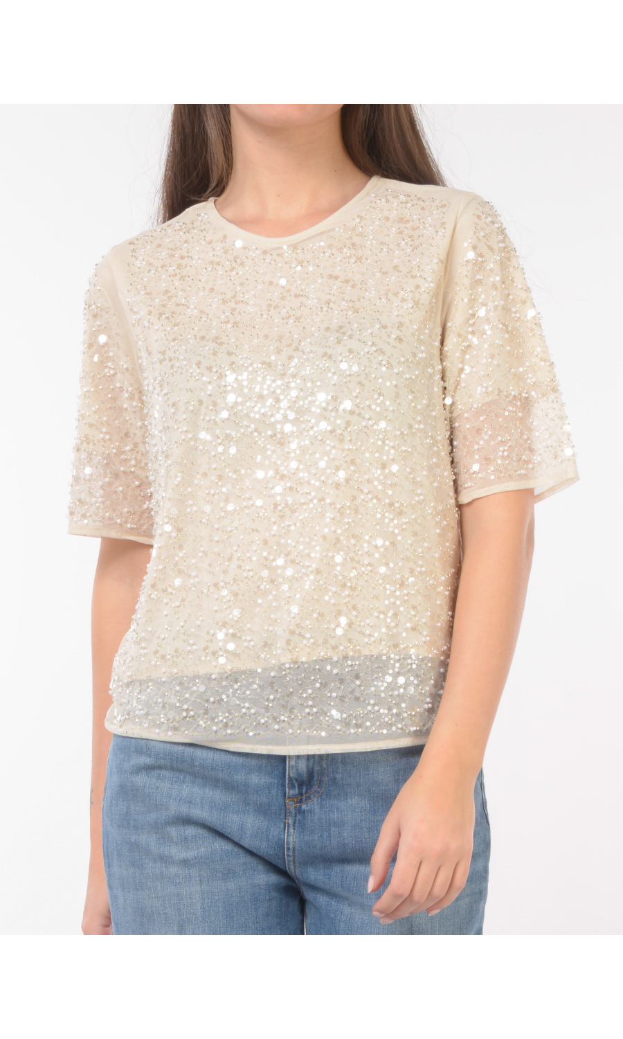 maglia da donna Kaos a manica corta con paillettes e perline RP1NT001_1003