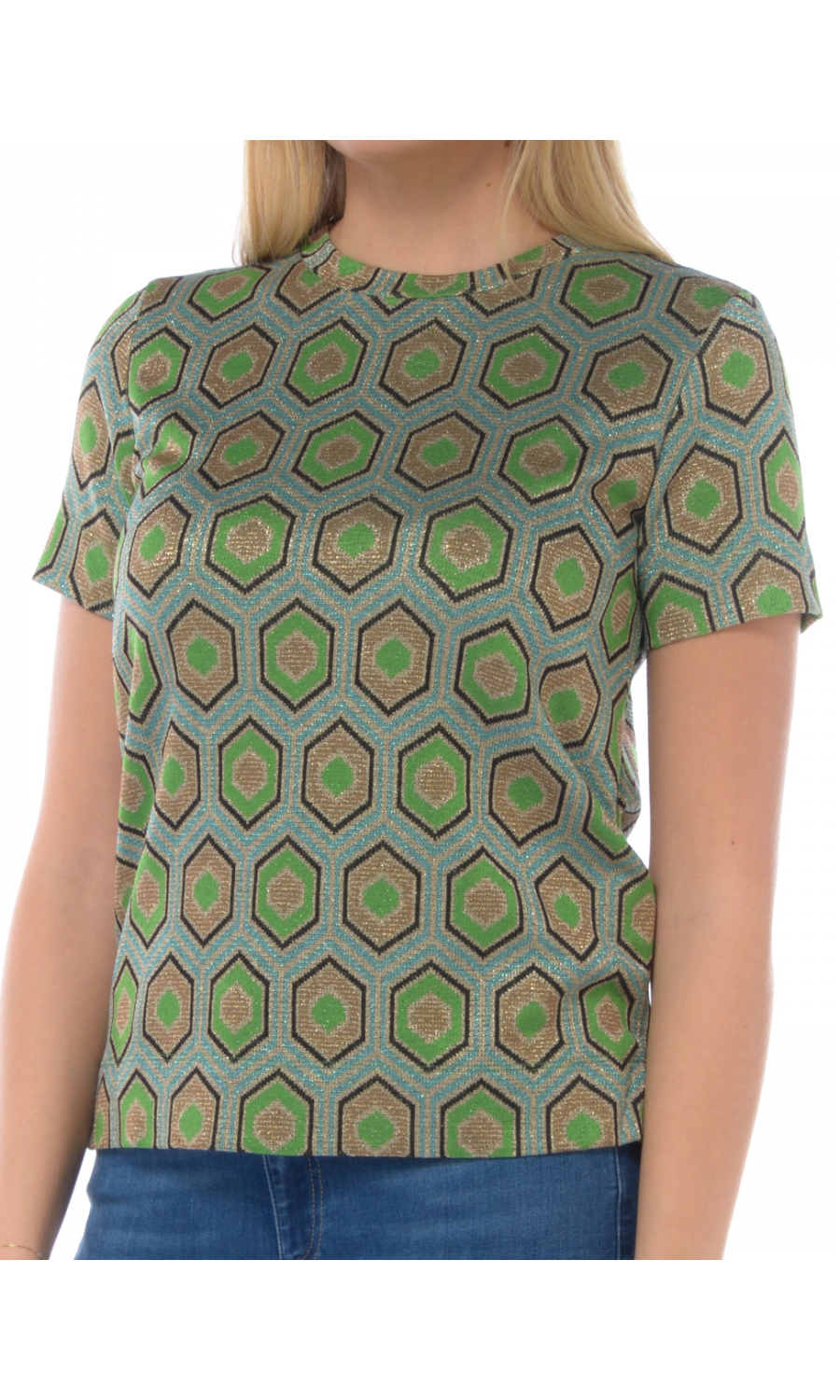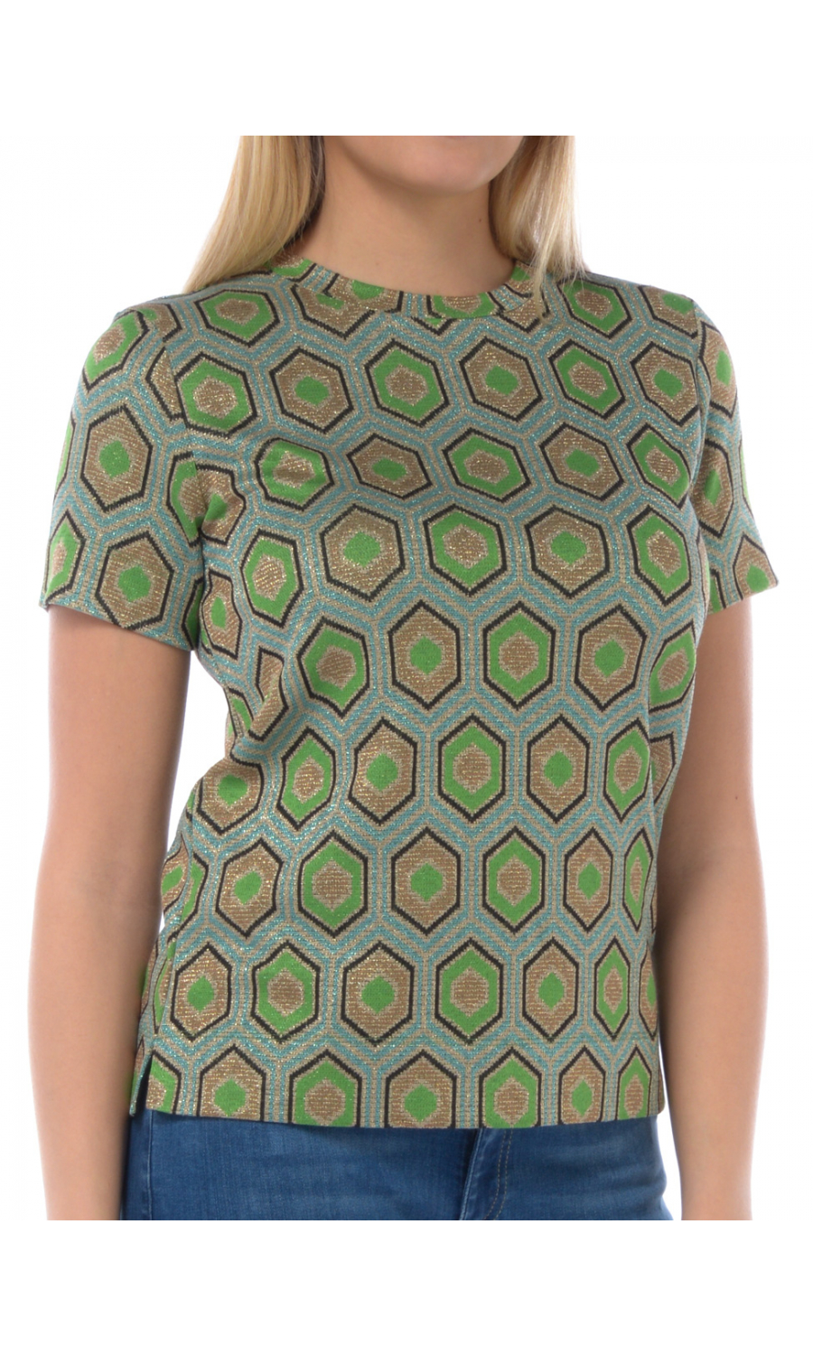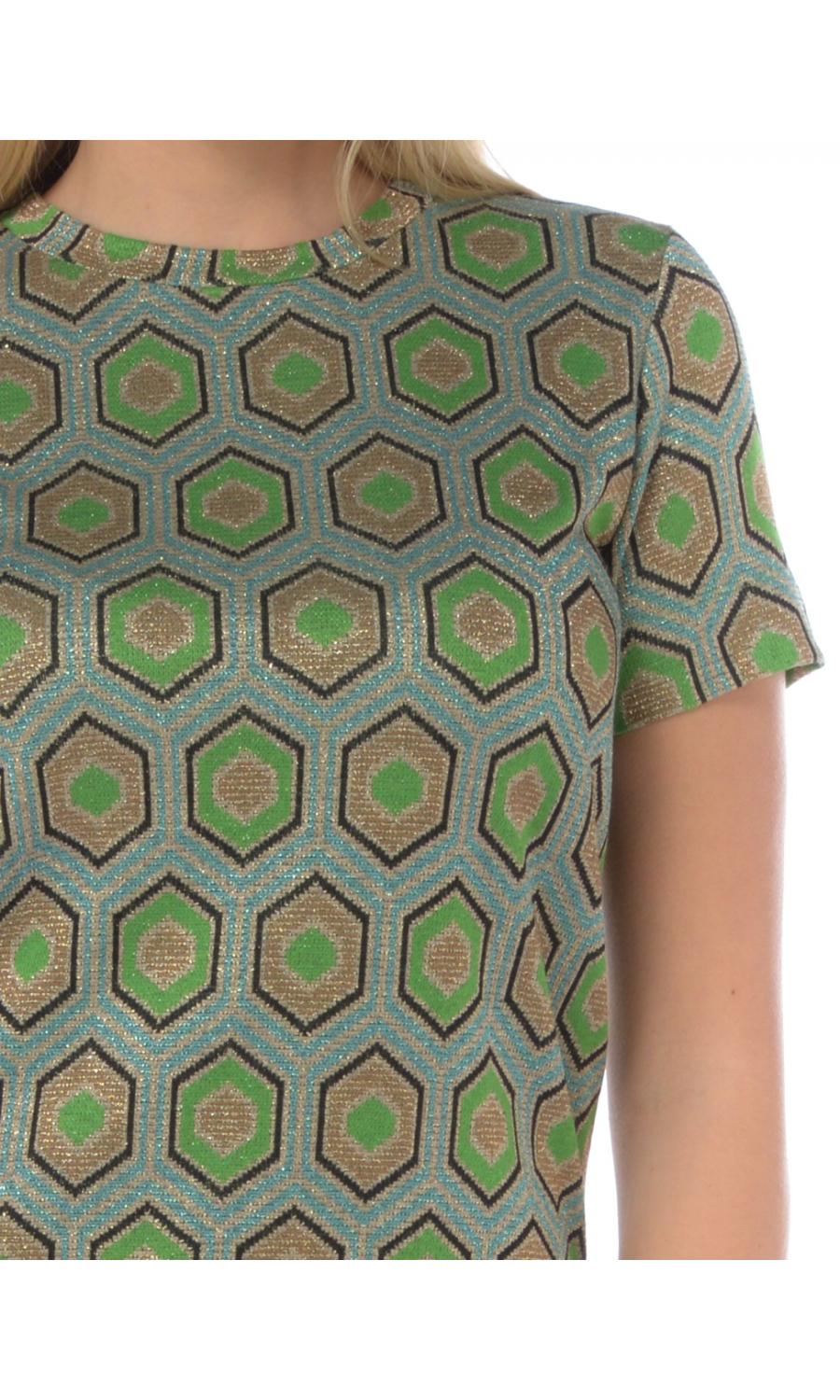 Composizione: 78% VISCOSA 12% POLIAMMIDICA 8% FIBRA METALIZZATA 2% ELASTAN