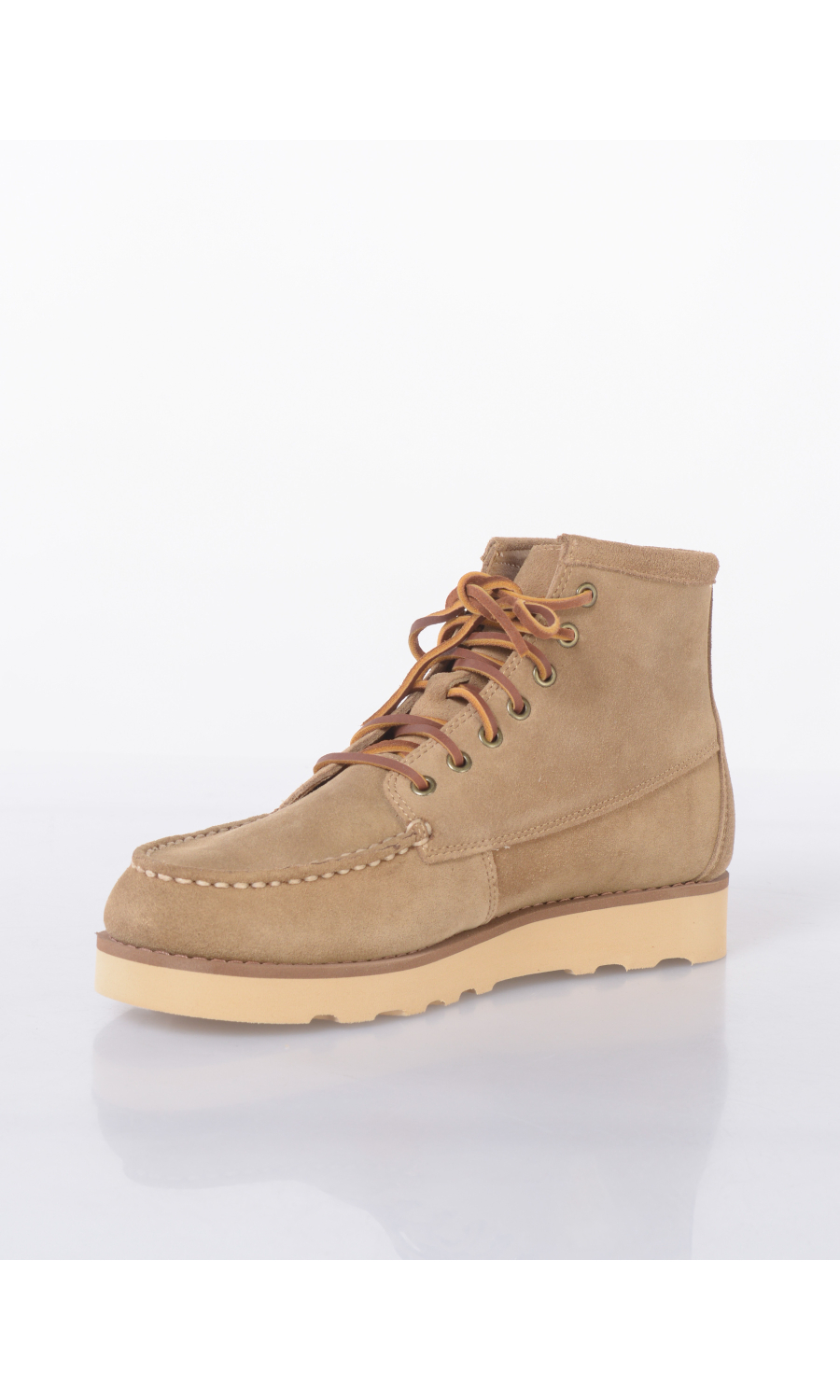 Mocassino modello Tala Mid Suede in vera pelle effetto camoscio, motivo di impunture in tono colore, chiusura con lacci squadrati in cuoio, scuola in EVA leggera intagliata a rilievo a contrasto colore, piccolo logo in tessuto applicato sul lato, interno in vera pelle.