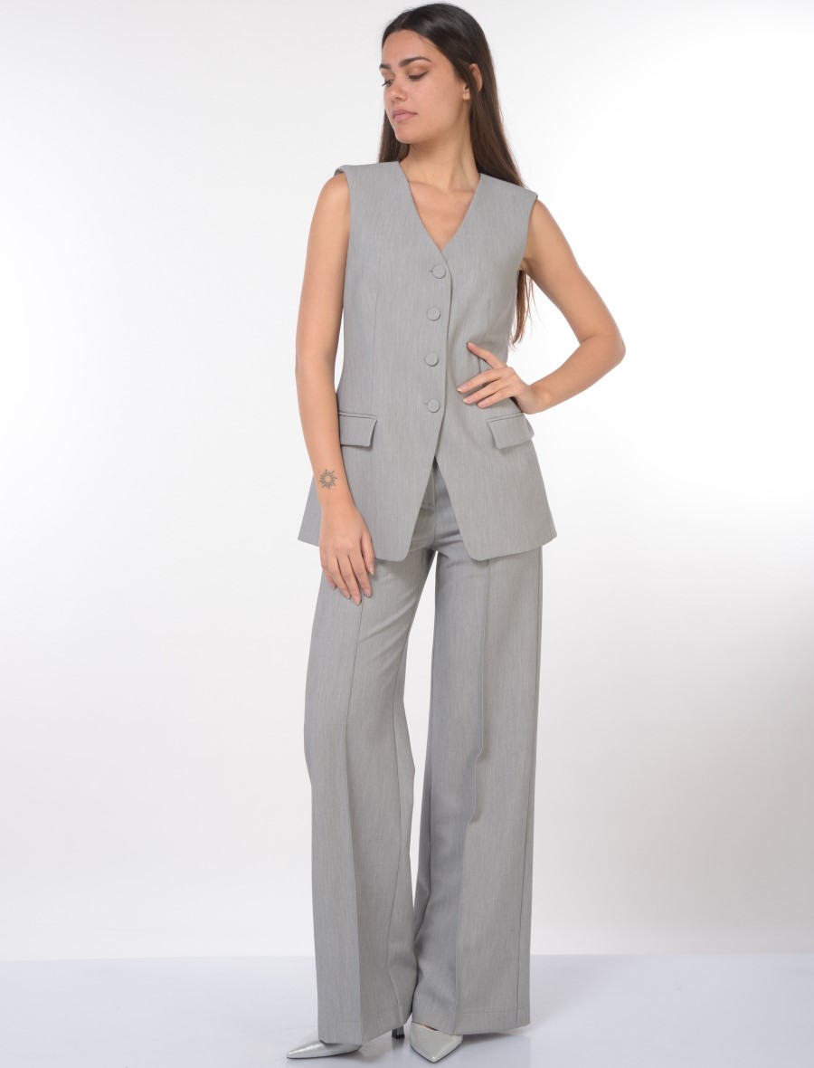 I pantaloni seguono la stessa filosofia, con linee morbide e moderne, ideali per affrontare la giornata con stile senza sacrificare la comodità.