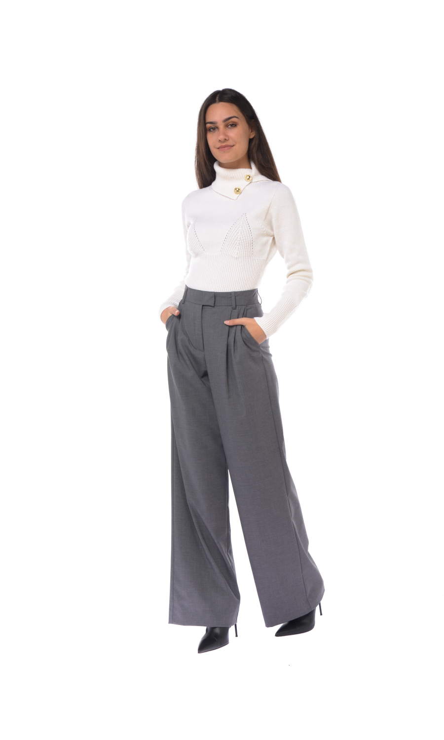 Composizione: 62% POLIESTERE 25% VISCOSA 9% LANA 4% ELASTAN