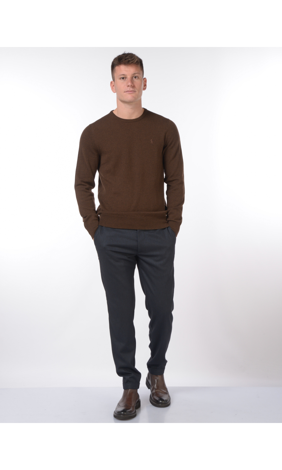 Composizione: 17% LANA VERGINE 54% VISCOSA 27% POLIESTERE 2% ELASTAN